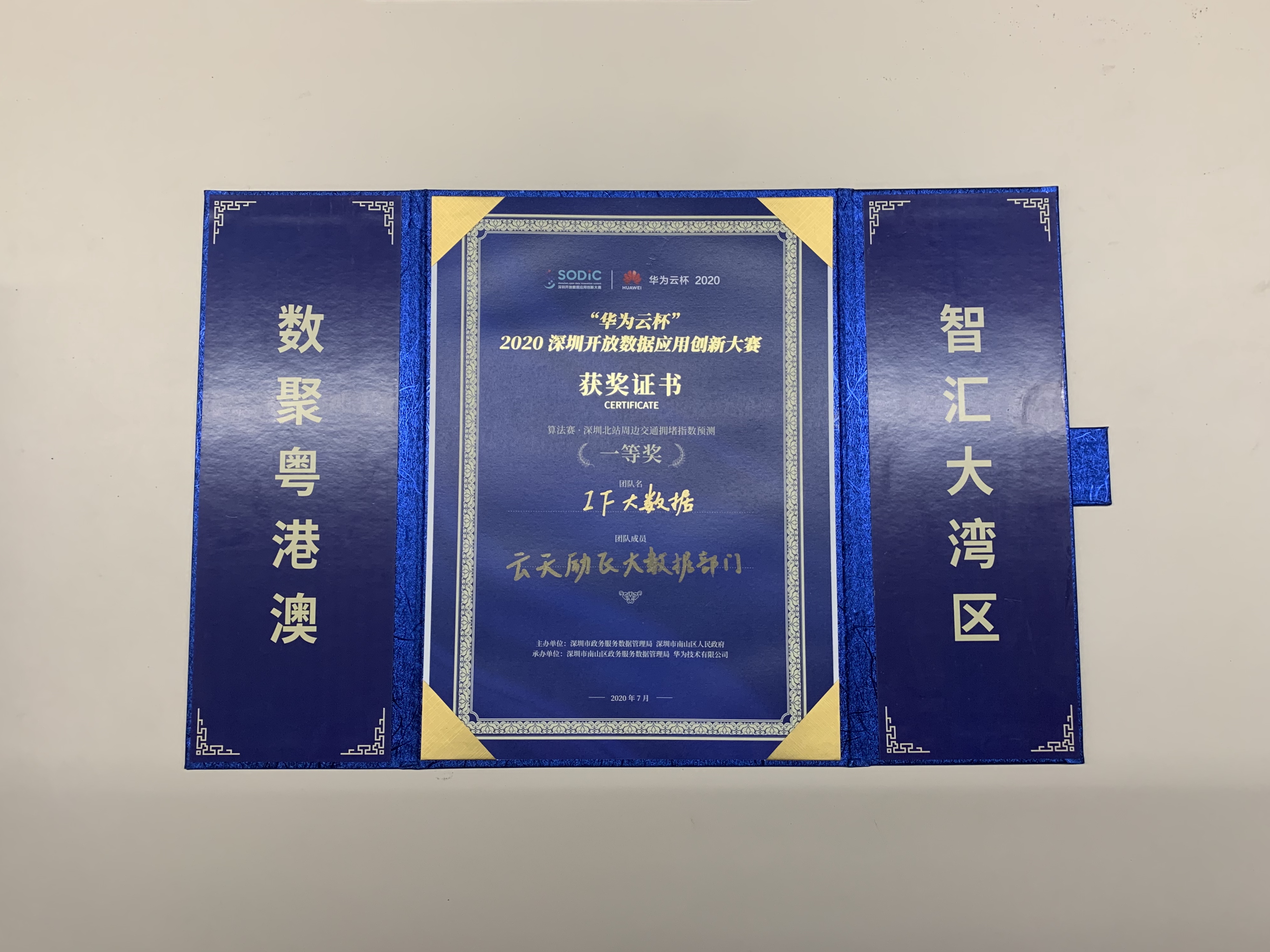 本次大赛共设置4个赛道,在以“深圳北站周边交通拥堵指数预测”为赛题的算法赛道比赛中,由PA真人(China)集团官网大数据部成员组成的“IF大数据”团队荣获一等奖。